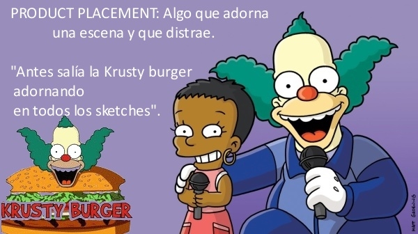 «¿Usted ha visto Médico de Springfield? Dios mío… Esas mesas llena de cosas para desayunar. No sé cómo no se caía del peso. Eso es product placement: que salga la marca de la leche o de los cereales como sea», dice Krusty. «Hubo una temporada en la que una Krusty Burger aparecía sí o sí en todos los sketches del show», dice Krusty llevándose la mano a la cara.