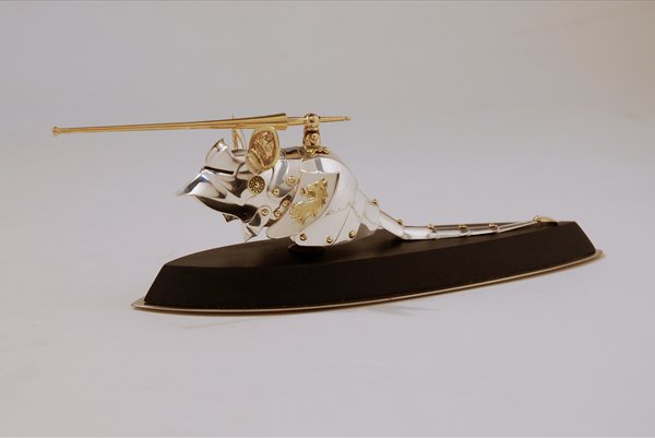 «Nunca he intentado probársela a un ratón, pero sí a uno de mis gatos y tengo cicatrices que lo demuestran. Si la pregunta es si sería posible hacerlo, sí, lo sería, pero creo que ese no es el tema más importante. Esta es la pregunta que me hacen con mayor frecuencia y yo creo que el motivo es que todo el mundo echa de menos completar la imagen, ver al gato con la armadura puesta. La imagen de un ratón o un gato con armadura excita nuestra imaginación hasta tal punto que creo que esa sensación es exactamente lo que convierte mis obras en arte y no simplemente en un buen trabajo de artesanía».