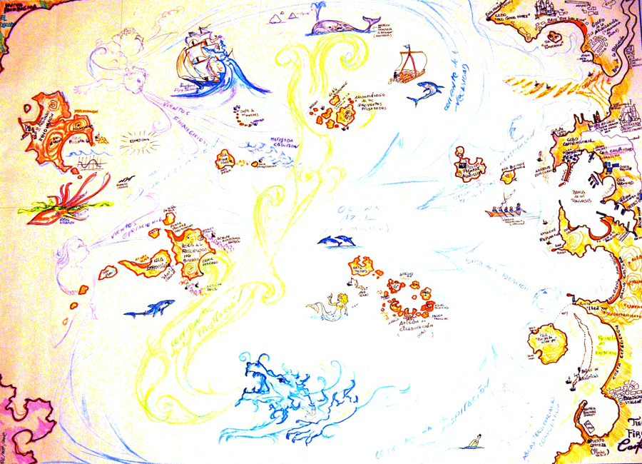 –Me retó a mapear la innovación y en vez de hacer un mapa tradicional, decidí dibujar una carta náutica en la que hubiese una tierra por explorar porque daba más juego. Y también para que no hubiera un solo recorrido. En la innovación no hay una ruta única. Cada uno tiene que encontrar la suya. Los caminos conocidos no llevan a lugares desconocidos.