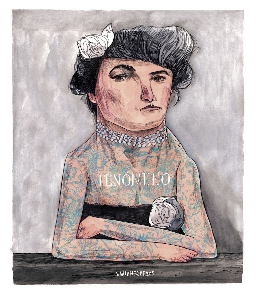 Acaba de publicar su primer libro con lomo. Todo un Fenómeno, y no porque el libro sea algo demodé, sino porque así es como lo ha titulado. Un libraco repleto de curiosidades de la naturaleza y de gente que encuentra virtudes en sus defectos. “Supongo que lo que lo caracteriza es el énfasis que pongo en el defecto, lo raro o lo grotesco, pero dotándolo de dignidad y buscando la belleza de lo diferente”explica la valenciana. Antes había publicado en fanzines y comics pero ya ha dado el paso a la tapa dura y trabaja en el siguiente volumen.