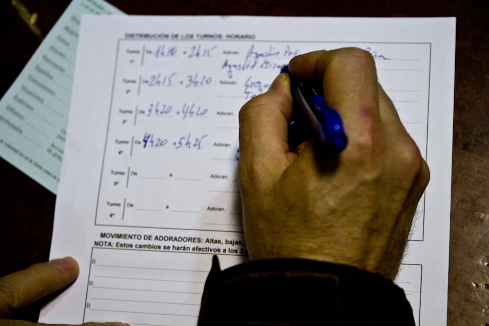 Al tiempo, podemos decir que la adoración es perpétua, ya que por el día también hay turnos de adoradores que no dejan vacía la ermita ni un solo momento. Aunque su antigüedad no alcanza el medio siglo como su sacrificada versión nocturna.