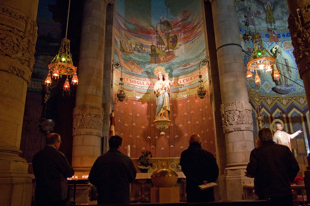 El templo del Tibidabo se transfigura cada noche en el faro espiritual y protector de la ciudad de Barcelona. Devotos católicos, o no, lo han convertido en una cita mensual consigo mismos y con la divinidad. Es un retiro espiritual en toda regla, como afirma el propio rector de la basílica. No importa credo o religión; “Hoy necesitamos silencio… Necesitamos reflexionar sobre lo que hacemos… relajarnos, huir de la agitación, encontrar un tiempo para nosotros mismos».