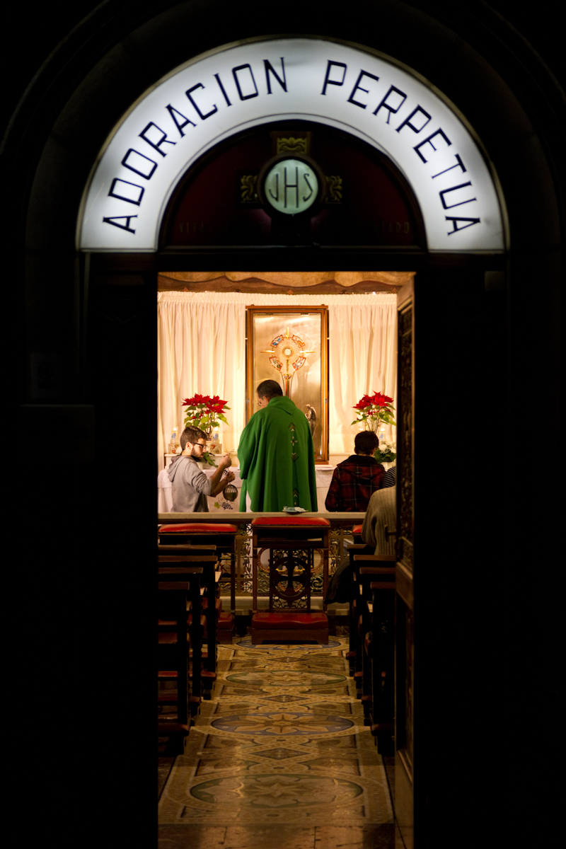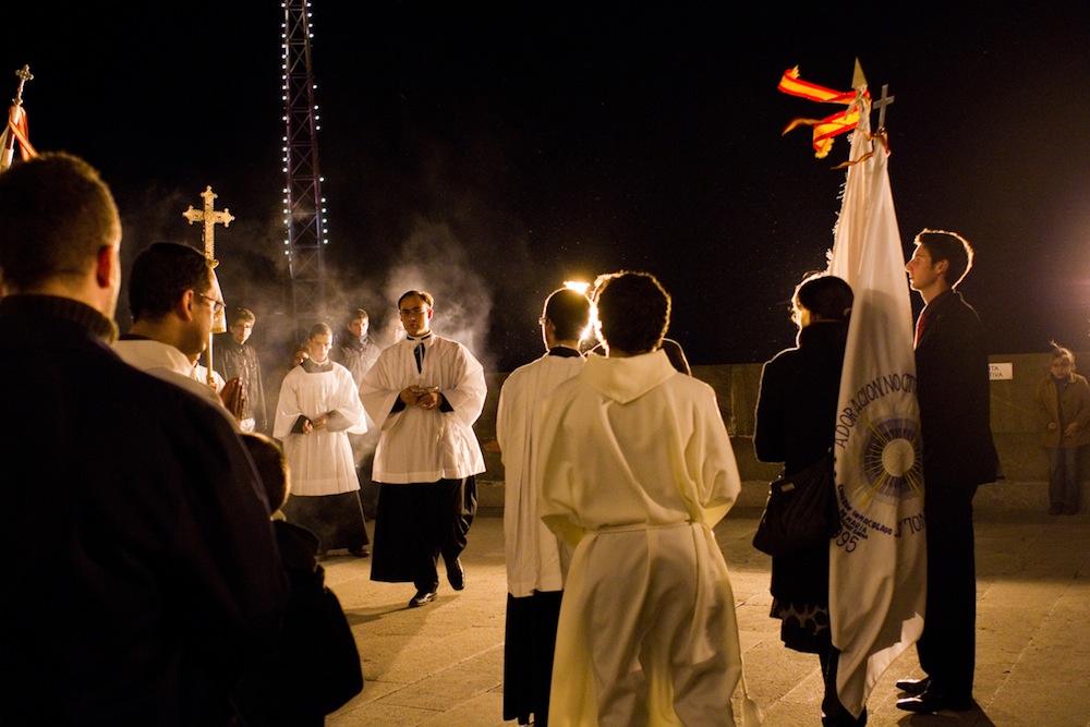 Una noche al mes hombres y mujeres de diferentes edades, clase social y procedencia suben en grupos organizados a pasar una noche entera en el Tibidabo. El templo dispone de cuartos para sus adoradores y tras una reunión, una peregrinación hasta la ermita de la adoración y una misa, cada cual espera su turno. Su hora de autoreflexión, de meditación, de silencio.