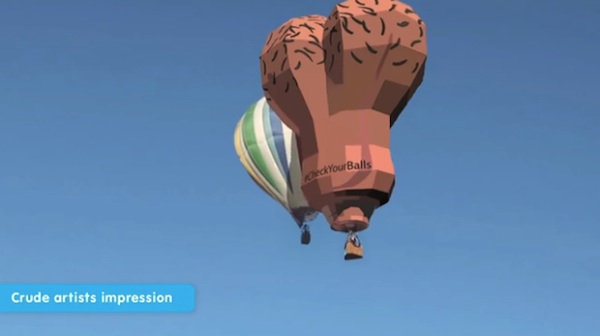 ¿Qué pensarías si, de repente, vieras unos enormes testículos inflados de aire caliente surcando los cielos? ¿Te apetecería hablar del tema? El pasado verano, el actor británico Chris O’Dowd, de la serie de televisión The IT Crowd, se unió a la campaña Male Cancer Awareness para crear conciencia sobre el riesgo de cáncer de testículo en varones. Y lo hizo con un proyecto bastante extraño: ‘SkyBalls’, la construcción del globo aerostático con forma de escroto más grande del mundo.