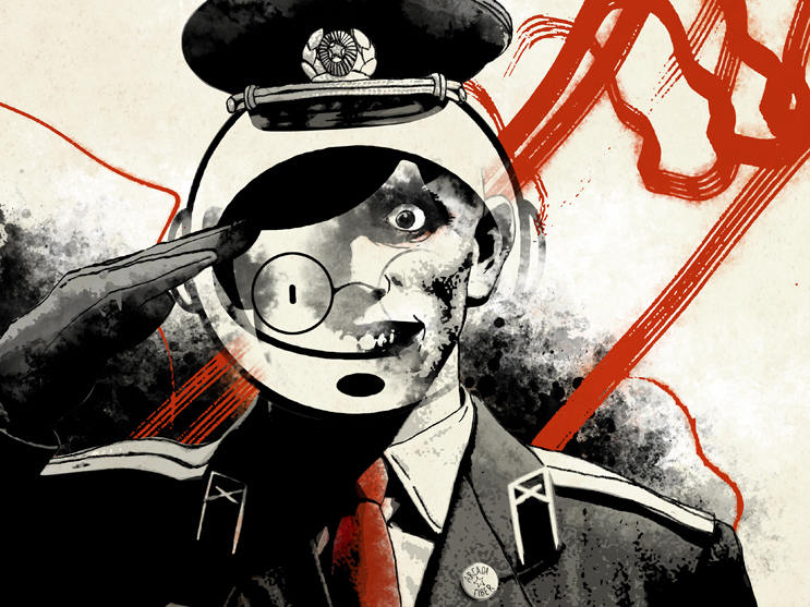 «Esta ilustración está directamente relacionada con la gira del disco Hospice, de The Antlers. El disco habla de infancia, de enfermedades terminales, hospitales y de sufrimiento en general. Visualicé la enfermedad como un oso que te devora por dentro, en este caso representado por el peluche de una niña».