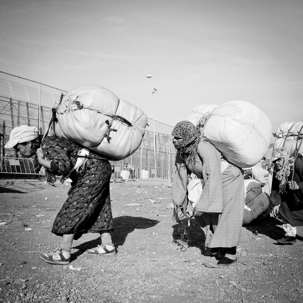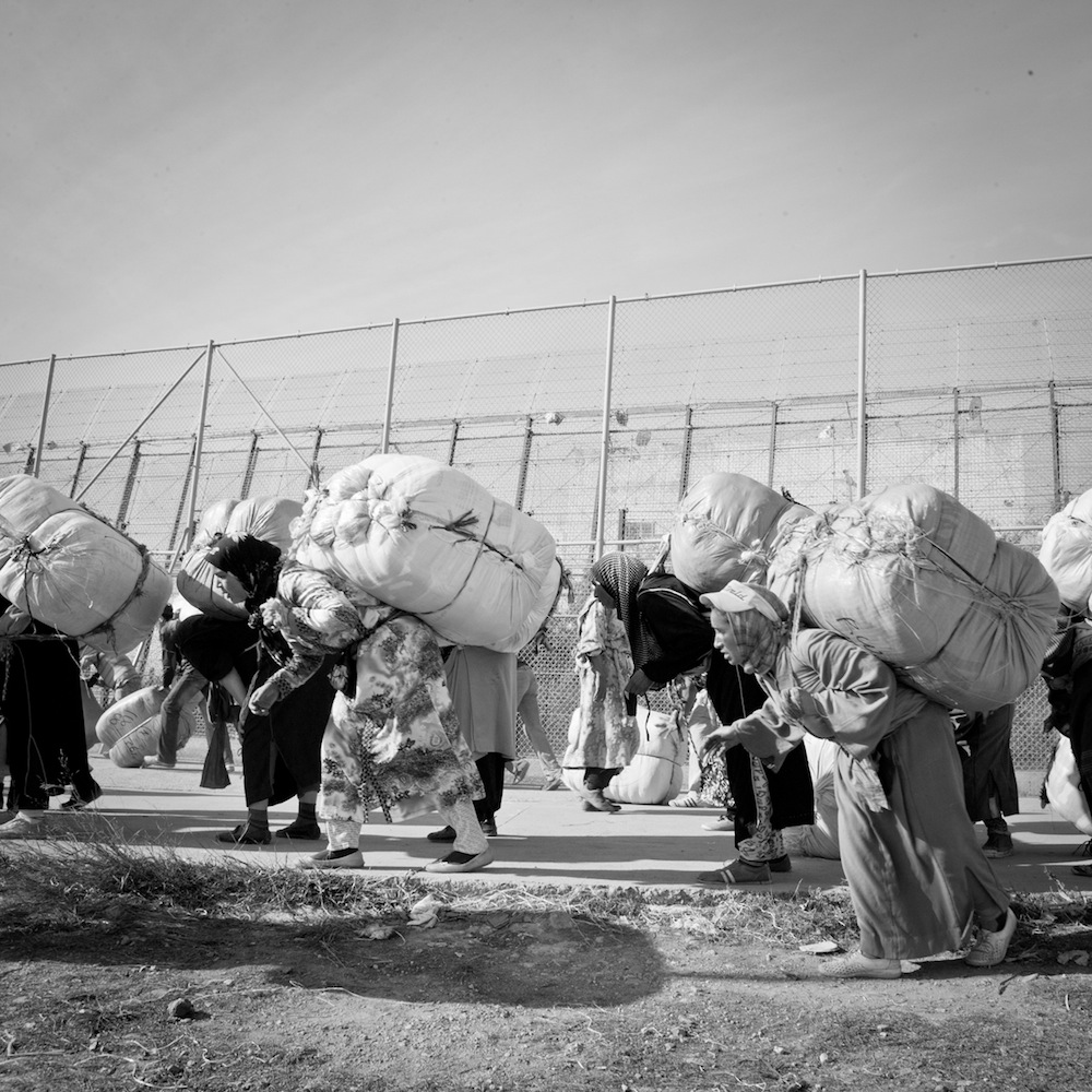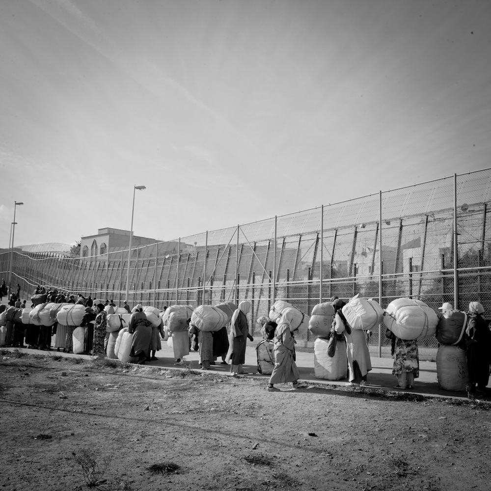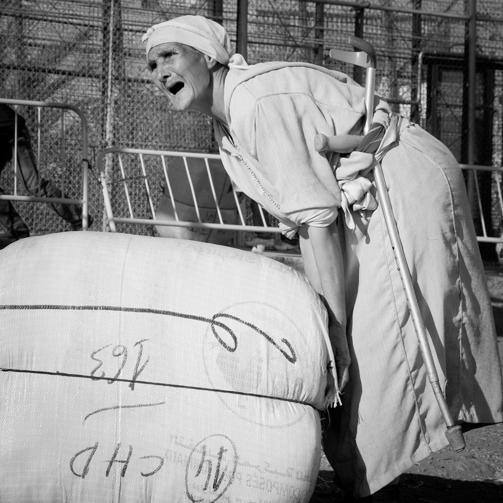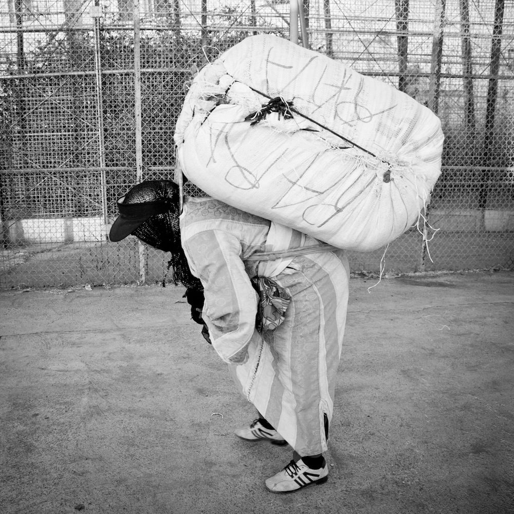 Es así como cada día, de lunes a jueves, miles de porteadores marroquíes cruzan a pie la frontera cargados con enormes bultos de hasta 80 kg. de peso. La mayoría son mujeres de todas las condiciones: jóvenes, mayores, abuelas, discapacitadas o con muletas. Algunas, con estudios. Otras, sin formación alguna. Muchas aparentan ser ancianas sin llegar a los 40 años. Entre gritos, empujones y peleas, y recibiendo hasta palos a veces de los policías, las porteadoras, también llamadas “esclavos de la frontera“, cargadas como mulas, transportan o empujan fardos que pesan más que ellas.