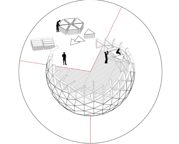 Construir un Lofty Corner requeriría de 487 piezas triangulares de igual tamaño que servirían para ensamblar una esfera con un radio de unos 5 metros. Cada una de las piezas, fabricadas en vidrio, dispondría de una capa intermedia dotada de células fotovoltaicas, encargadas de captar la luz del sol y transformarla en energía para iluminar el recinto durante la noche. Barros sugiere también una fina capa de nylon para proteger la parte superior de la esfera.