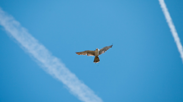 El halcón es un animal imponente que llega a medir 50 centímetros. Sus poderosas y afiladas garras le convierten en un auténtico depredador para el resto de aves que saben que, si quieren seguir vivas, deben permanecer por encima de este animal. “Esa es la principal función del halcón: hacer que el resto de aves se desplace hacia arriba en la zona aeroportuaria y permita a los aviones el correcto aterrizaje o despegue. Si el pájaro permanece debajo del halcón, su muerte es segura, ya que cae sobre su presa en picado a una velocidad de 300 km/h, lo que le convierte en un auténtico proyectil”, señala Jordi García, también halconero en El Prat.