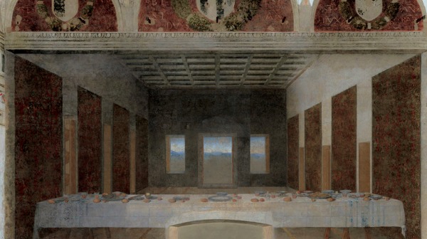O quizá sí pero de repente todos salieron despavoridos… El caso es que en la reinterpretación del famoso cuadro de Leonardo DaVinci por parte del artista new-media no hay ningún comensal.