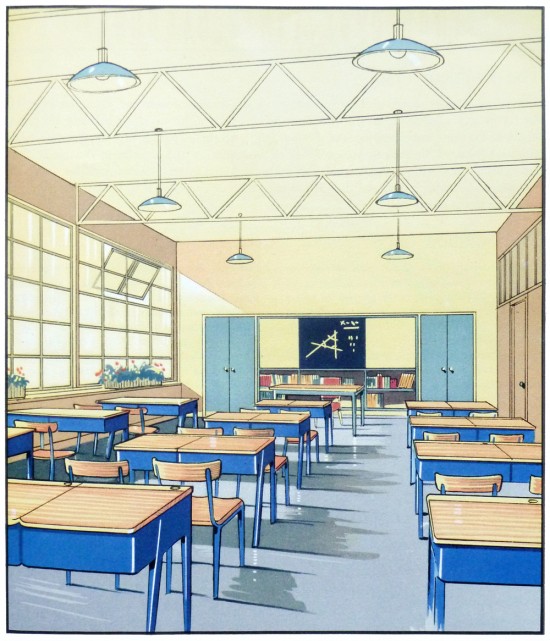 Mucho antes de que los ‘renders’ digitalizados llegaran a dominar la presentación de proyectos arquitectónicos, se recurría a dibujantes capaces de transmitir los proyectos. Estos dibujos en concreto son de fábricas, colegios y hospitales, realizados a principios de los años 30 en el Reino Unido.