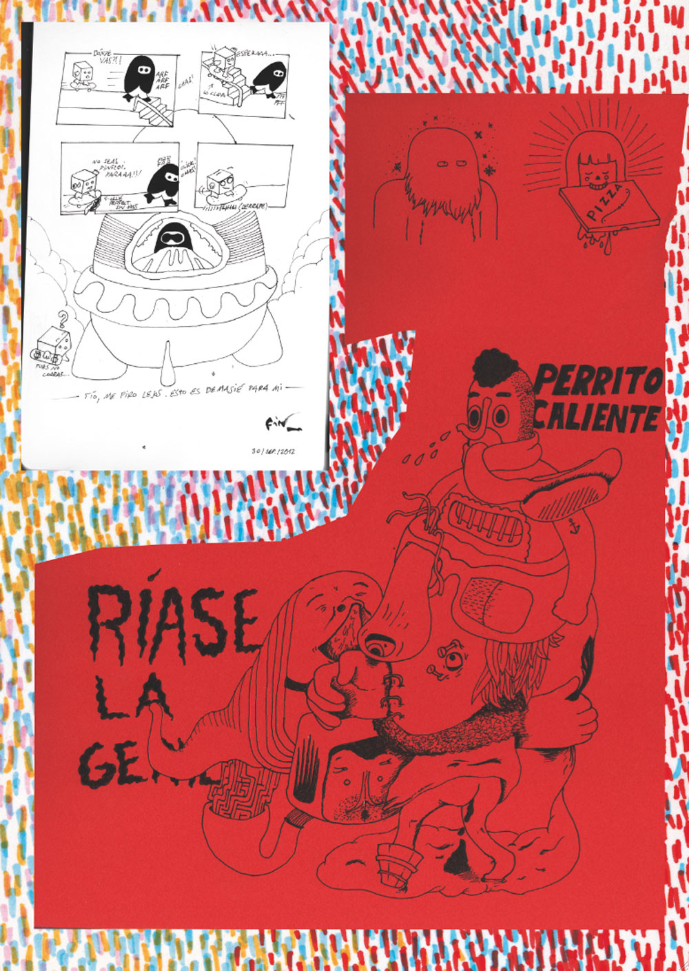 El origen de Mierda es tiene algo de búsqueda de purismo del fanzine. Sierra asistió, hace un tiempo, a una feria de autoedición y salió con un sabor amargo. “Vi que la mayoría de las publicaciones eran cosas insustanciales, puros ejercicios de estilo. Y a mí lo que me gustan son los fanzines de toda la vida, con una actitud punk. Fanzines que hablan de algo, que son como el pequeño universo de alguien que intenta comunicarse y resultar políticamente incorrecto”, indica el dibujante. “Quería que fuese algo inmediato, sin prestar atención a la técnica. Algo que me hiciese desahogarme rápidamente y que su producción fuera económica. Vamos, un fanzine de toda la vida”.