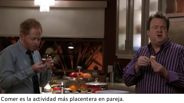 Las revistas de ‘psicología’, de moda y del corazón venden que las parejas deben compartir actividades. Modern Family nos recuerda que compartir actividades puede resultar frustrante para las parejas. Como que Mitchell y Cameron sean incapaces de compartir una dieta o que Claire vea apoyada sus causas por sus hijos y su marido.