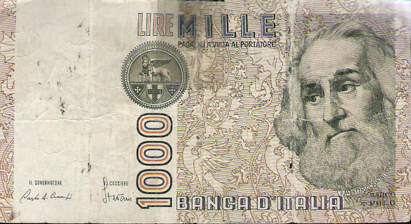 Ahí enfrente pueden admirar la lira italiana, la maestra de la devaluación. Con sólo cinco monedas, de 50, 100, 200, 500 y 1.000 liras, y nada menos que siete billetes. Uno de 1.000 liras para sustituir a la moneda, otro de 2.000, 5.000, 10.000, 50.000, 100.000 y, atención, 500.000 liras. Ese billete verde de nada menos que 16 centímetros con la cara Rafael grabada. Al cambio un euro pasó a valer lo que 2.000 liras. Bueno, no. Lo que 1.936,27 liras. Maldito redondeo.