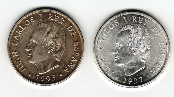 Y ahí está, cerrando la ruta, nuestra querida peseta. Esa rubia, esas dos pesetas, ese duro, esos dos duros, esos cinco duros, los diez duros, los veinte duros, los cuarenta duros, los cien duros. Cuánto cambiaron. De la rubia a la ‘mini-peseta’. De las ‘chapas’ de cinco y diez duros a la moneda con agujero y la otra con estrías. Cuánto cambiaron en tan poco tiempo.