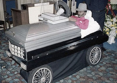 El negocio de la creatividad también ha entrado en los funerales y ataúdes. Desde hace décadas se celebran ceremonias con un cierto aire festivo. Así fue la de Willie The Wimp. El matón y traficante de drogas fue asesinado en 1984 y, para su homenaje final, el padre encargó un ataúd que imitaba a un Cadilla Seville, equipado con faros intermitentes, luces traseras, parabrisas y una matrícula con su apodo familiar.