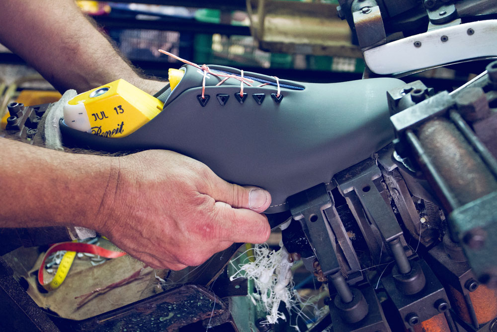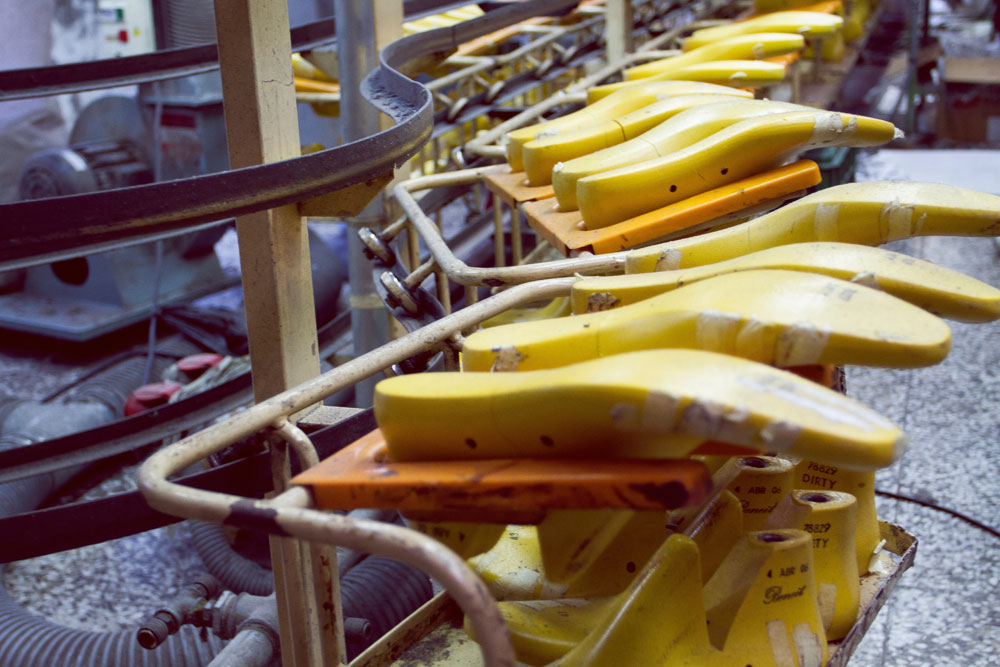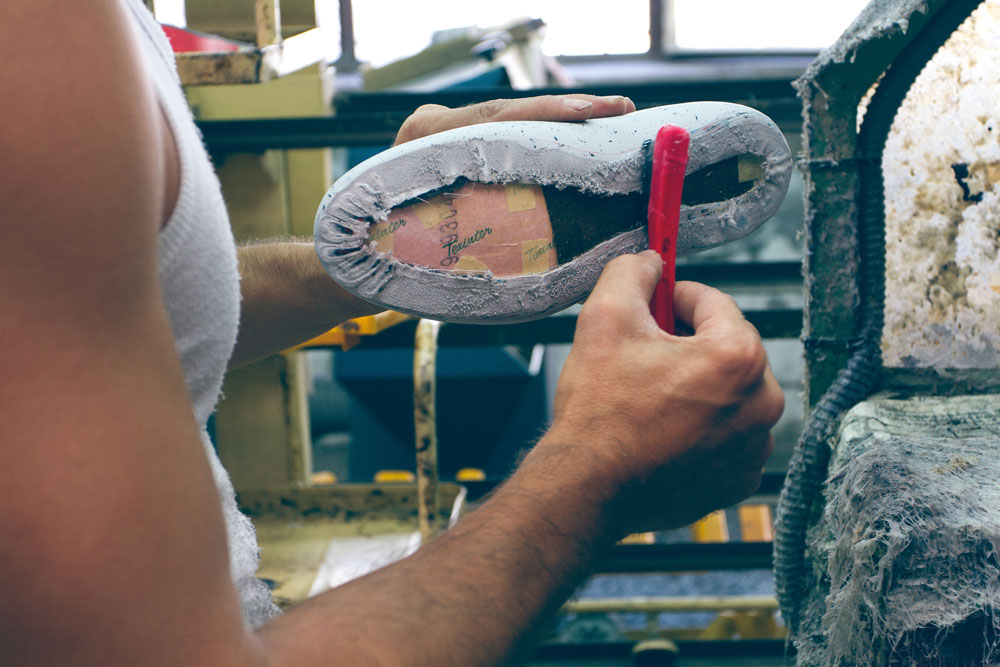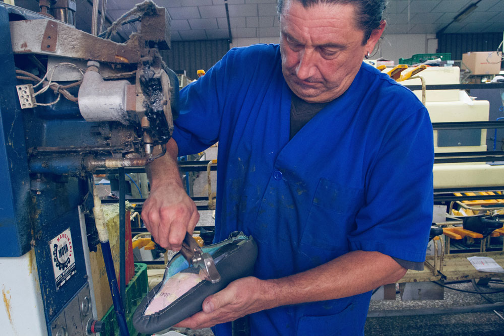 El proceso de producción llevó muchos meses. Ningún participante en la estrategia y diseño habían trabajado antes en la industria del calzado. Era requisito innegociable. La única forma de llegar a algo nuevo era evitando vicios antiguos. Pero una vez hallado el prototipo entró la experiencia. Escogieron una fábrica en Elche y, hoy, “la producción de las muro pasa por casi 100 manos”, explica uno de sus fundadores, R.H. El proceso se mostrará, dentro de muy pocos días, en el apartado de su web ‘Humanos y máquinas’.