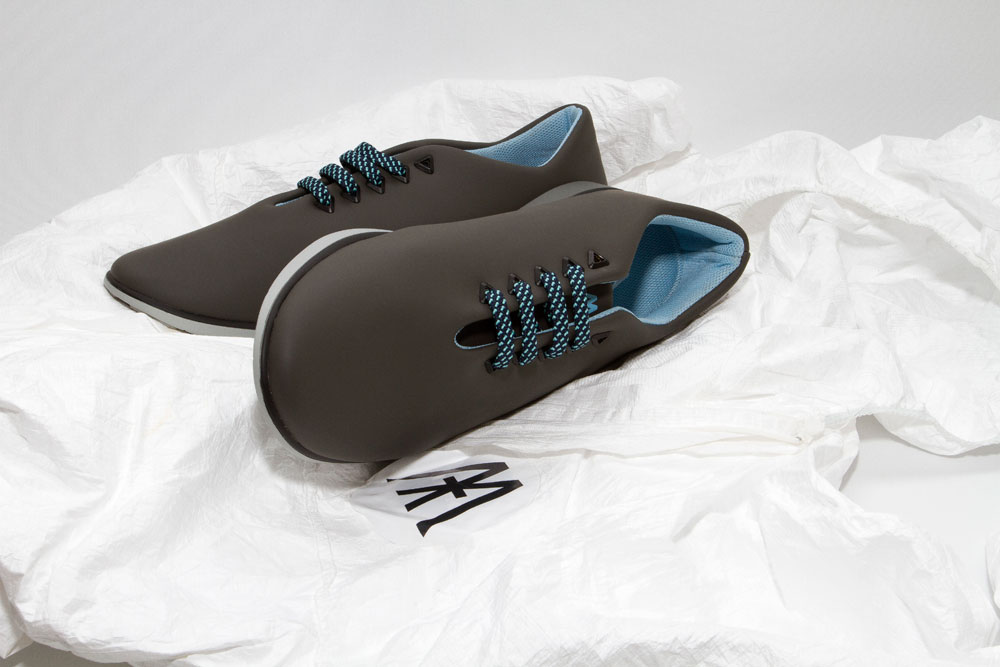 La extinción, desde el pasado y el futuro, inspira la primera colección de wearable objects de Muro.exe. El producto con el que se estrena la marca está destinado a caminar, pero en vez de llamarlo zapato o zapatilla prefieren hablar de objeto vestible, porque está fuera de la lógica del calzado habitual.
