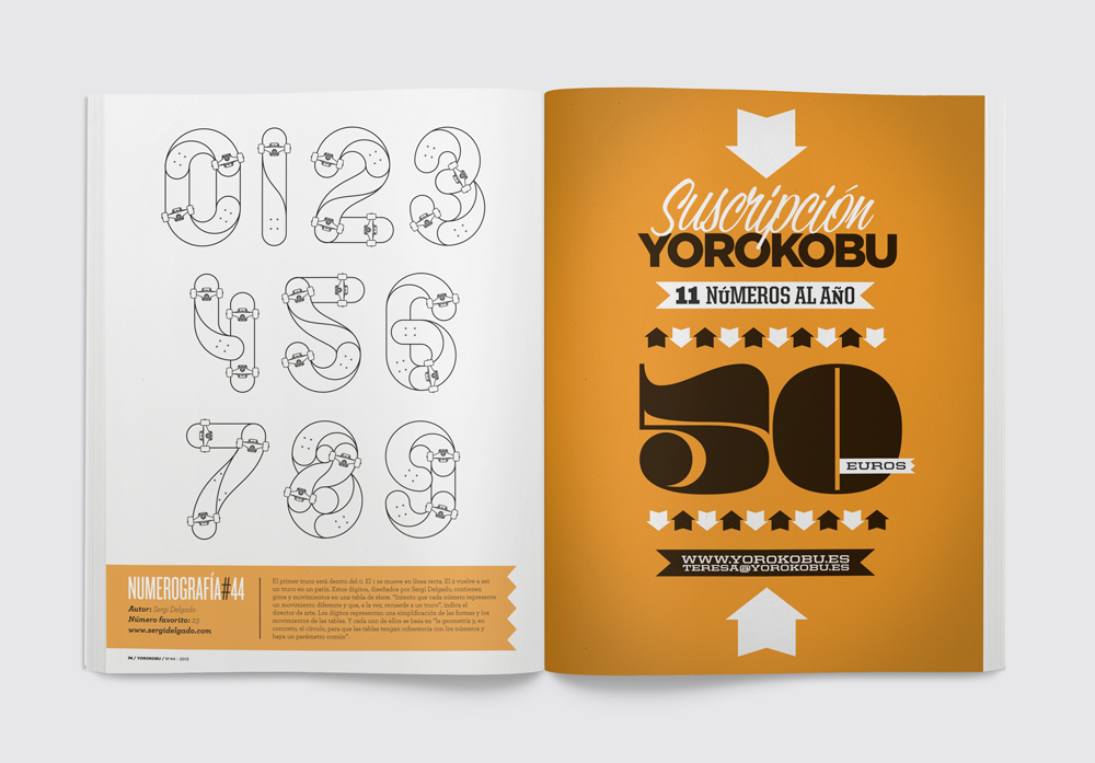 Los dígitos creados para el número de octubre de la revista Yorokobu representan una simplificación de las formas y los movimientos de las tablas. Y cada uno de ellos se basa en “la geometría y, en concreto, el círculo, para que las tablas tengan coherencia con los números y haya un parámetro común”.