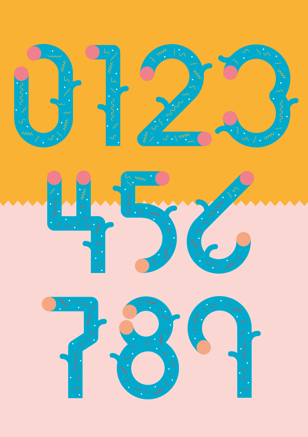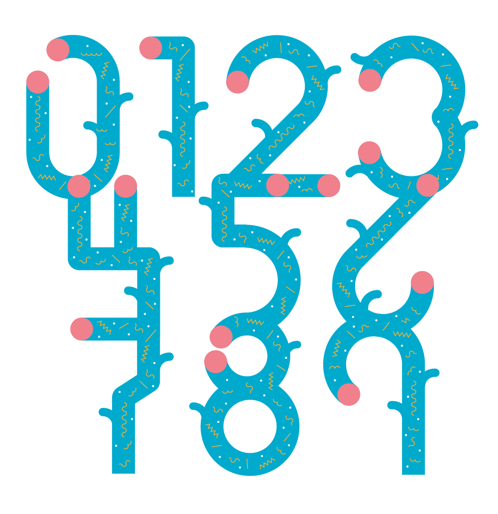 Estos números son la continuación de la rama de un árbol. Alberto Rodríguez los dibujó al dictado de la naturaleza para la revista Yorokobu de este mes de septiembre. El diseñador se fija en las plantas, las flores y, en general, la vida más allá del cemento para convertirlas en criaturas gráficas.