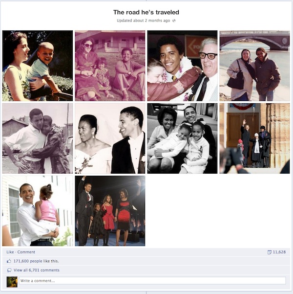 También cuenta con un Álbum de familia en su perfil. Incluso en el título aprovechan para inyectar un poco de humanidad: «The road he’s traveled» (algo como El camino que ha tomado para llegar hasta aquí):
