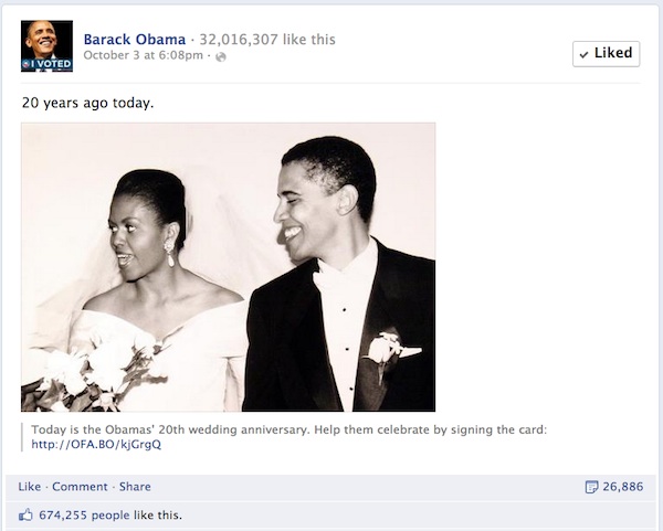 La campaña de Obama no ha tenido reparos en recurrir al sentido del humor en sus actualizaciones en Facebook: