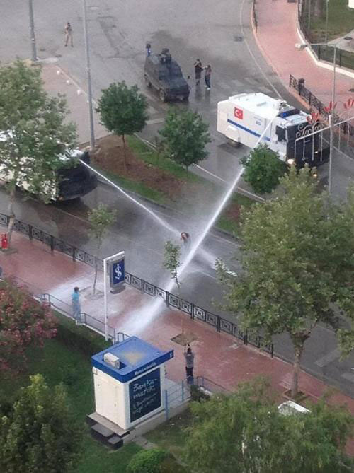 Los medios se muestran indiferentes ante el acontecimiento y el primer ministro del país, Erdogan, no titubea en emplear la mano dura. El tuit con esta foto se difundió así por la Red. (Puedes verlo en el gráfico en movimiento, junto a la imagen).