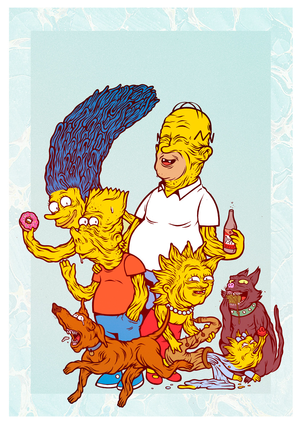 El primer día fue definitivo. Manuel Donada, fundador de la galería de arte Watdafac, encendió la tele y encontró una serie desconocida de personajes amarillos. Eran las 11 de la noche. Un día cualquiera sin fecha en la memoria. Aunque “desde ese momento, me quedé enganchado”, cuenta el dibujante. “Nunca pensé que se podría superar a los clásicos y que algo volvería a sorprenderme, pero me equivoqué. Llegaron Los Simpsons y lo descoloraron todo. Siempre me han hecho reír muchísimo. El dibujo es sencillo y eso es algo que me fascina. Cuatro líneas bien puestas que te cambian la vida”.