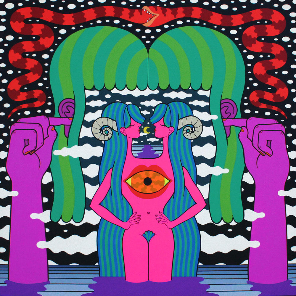 “El arte y las personas me inspiran. Me interesa lo misterioso, la psicodelia, lo plano, lo icónico, lo bonito y lo feo. La simetría, el simbolismo, la vida, la muerte y los humanos (el cuerpo y sus partes, en general, especialmente la forma femenina). También me gustan muchas, muchas cosas que surgieron del arte, la música, el diseño, el color, la moda, los muebles y la arquitectura de los años 60 y 70 en EE UU”, comenta.