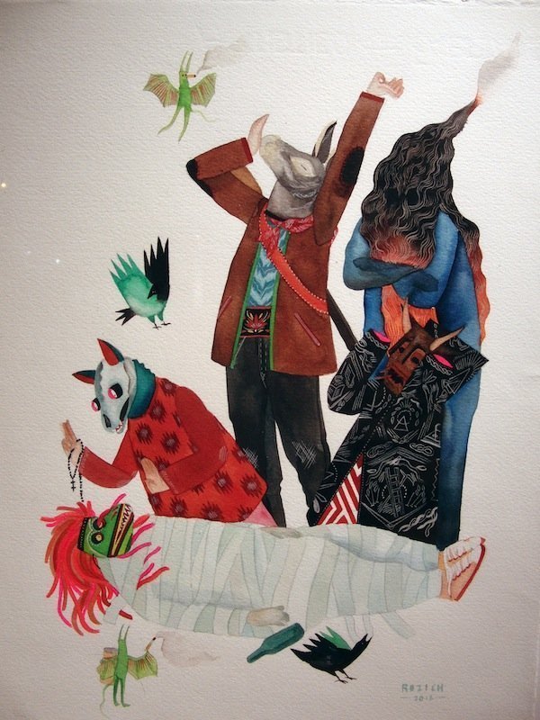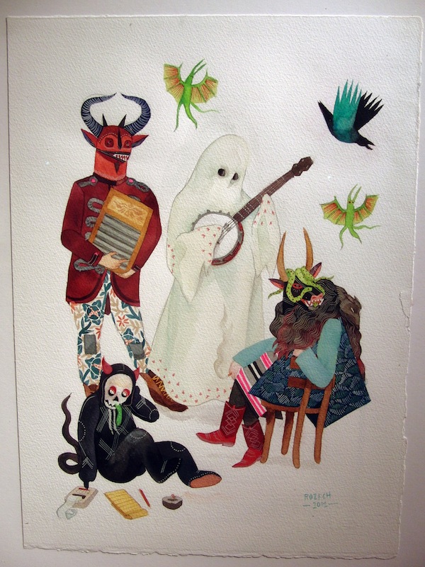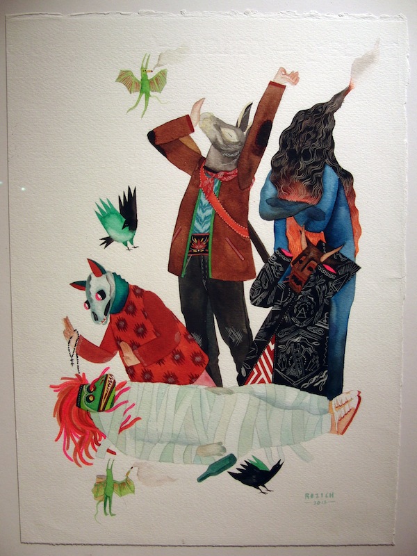 Estudió dibujo en San Francisco y el año pasado acabó las clases de diseño gráfico en Seattle, donde vive. Rozich se considera amante de los gatos, pero lo que verdaderamente le inspira además de artistas como Gauguin, Rousseau o Marcel Dzama y su amigo Matthew Craven, es una lista que resume en el folclore popular, los estampados de las prendas tradicionales de Europa del este o de países del oeste africano, los dibujos animados que veía de pequeña y ver a los niños actuar en situaciones cotidianas. Todo esto se aprecia claramente en sus dibujos en acuarela y gouache.