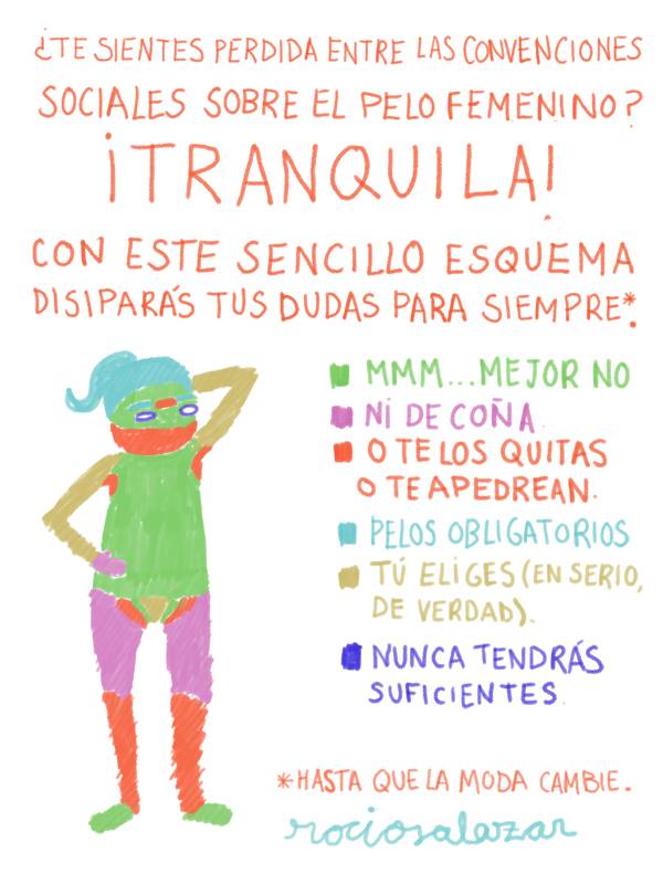 Cuántas veces me he preguntado «¿y si no me depilo más?» y entonces he descubierto que la misma pregunta se hizo la genial ilustradora Rocío Salazar en una serie de divertidas viñetas, que han acompañado este texto desde el principio, sobre el polémico vello corporal.
