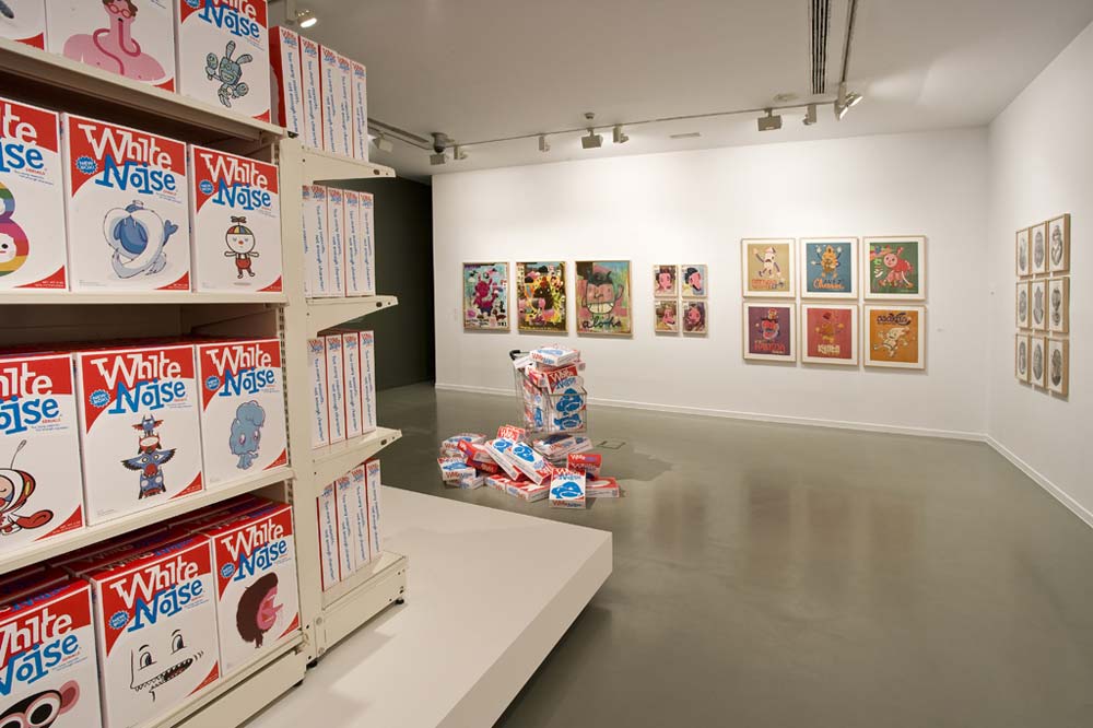 Pictoplasma White Noise: Creación de personajes en el diseño gráfico y las artes visuales expone, además, una parte de la colección de toys de vinilo de Selim Varol, la película Logorama y una instalación que imita al lineal de un supermercado. Las estanterías están llenas de cajas de cereales y en cada una de ellas aparece un personaje diferente. Los han creado una serie de artistas de reconocida trayectoria profesional y diez autores que han seleccionado los comisarios de la exposición, Lars Denicke y Peter Thaler, entre 350 propuestas, en un concurso organizado por La casa encendida.