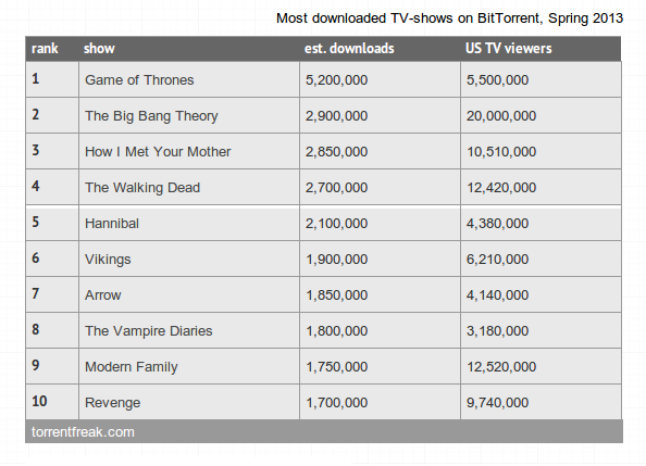 ¿Y por qué la lista de las series más pirateadas? Por varios motivos. Uno, que resulta lento y fastidioso tomar las audiencias de los distintos canales de cable y en abierto de Los Estados Unidos y del resto del mundo. La lista de las series pirateadas tiene una única fuente de información: BitTorrent.