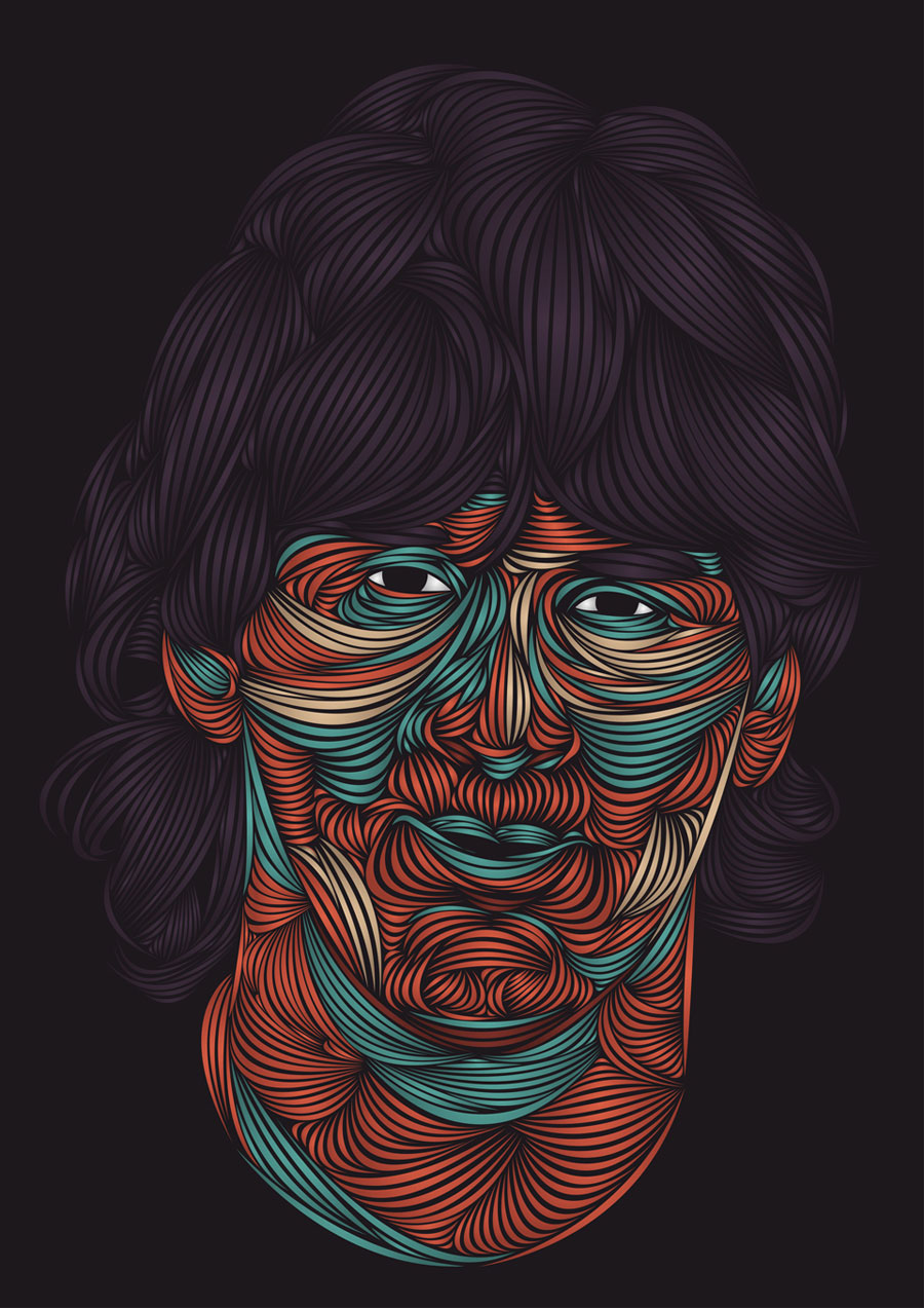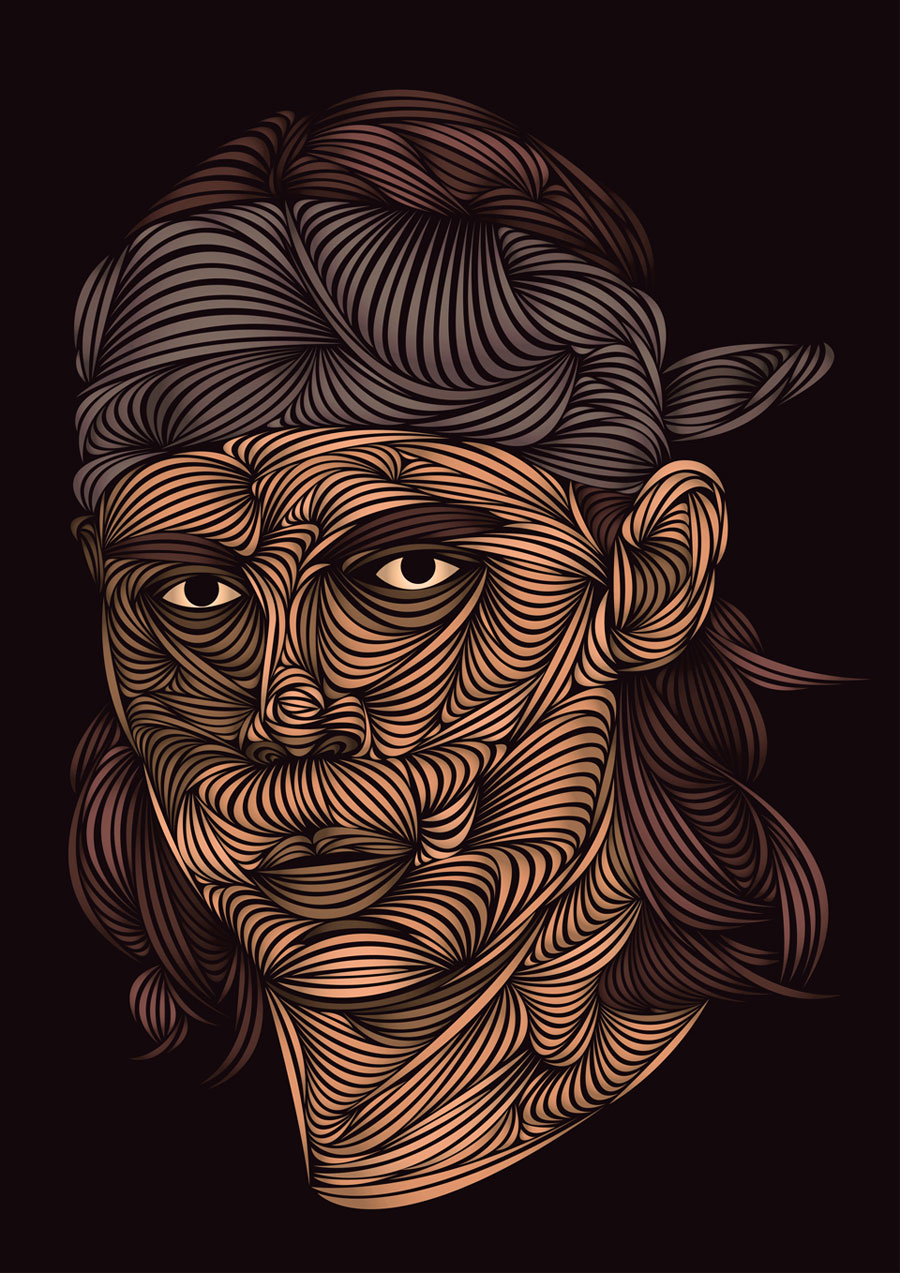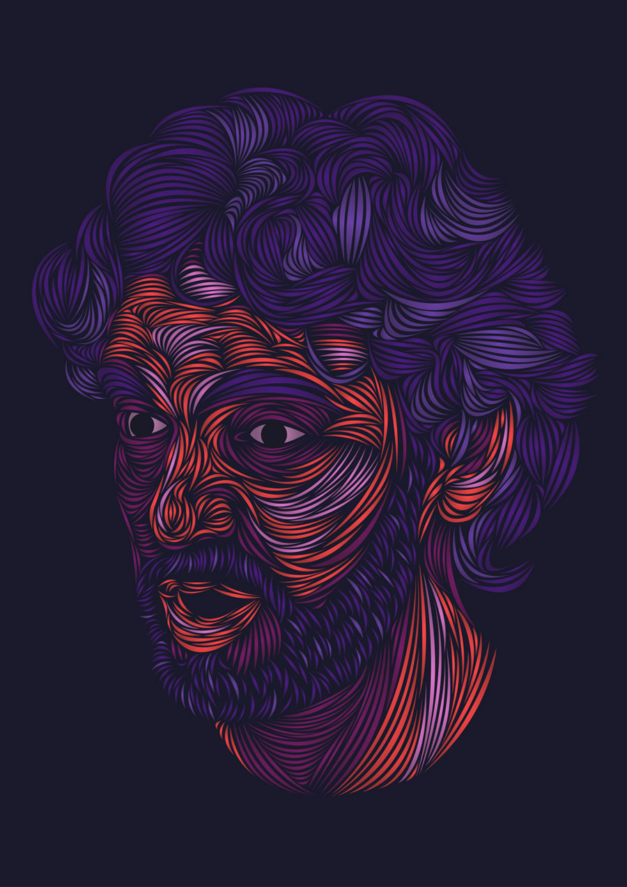 Fue solo la mirada. Porque justificar una ilustración, a menudo, no obedece a los dictados de la razón. La serie Atletas nació «por casualidad», explica Pocull. «Me encantan los deportes. Más verlos que practicarlos (ríe). Y pensé en hacer algo relacionado con retratos de atletas. La técnica parece muy complicada pero, en realidad, es sencilla. Es un trabajo en vectorial. Son líneas encima de un retrato. Al principio son solo formas y rayas. Después aplico un degradado independiente a cada línea».
