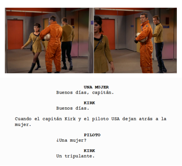 “¿Y por qué no?”, dice el capitán Kirk en el doblaje español en lugar de “una tripulante”.