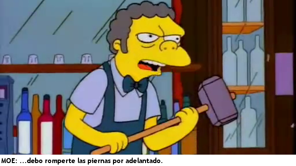Homer espera que Moe quiera prestarle dinero. Moe teme que prestar dinero a Homer sea un mal negocio (un riesgo) y exige garantías adicionales (una prima… de riesgo).