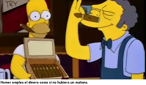 Quería saber qué era la prima de riesgo, busqué información y recordé un capítulo de Los Simpsons: en el que Homer pide un préstamo a Moe, y solicita un rescate económico a las hermanas de Marge (6×17).