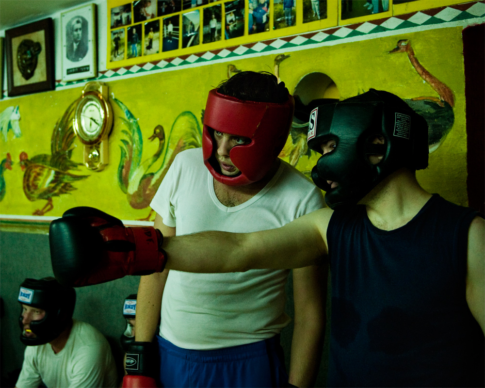 En el interior del búnker anti-bombas la música tecno rusa hace temblar los cristales de las vitrinas de trofeos mientras los jóvenes boxeadores dejan en sus mochilas sus creencias y las de sus familiares haciendo lo que más les gusta, boxear. El ambiente era afable y entrañable ya que el boxeo, siendo un deporte muy violento, es uno de los más pacíficos con los que me he encontrado. En las sesiones de entrenamiento y de combate todos entrenan a la par. Imagínate, un musulmán y un judío dentro de un ring dándo lo máximo de sí, termina la sesión y ríen, se abrazan y se felicitan por el último gancho. Yo sería incapaz de creerlo si no hubiera estado ahí.