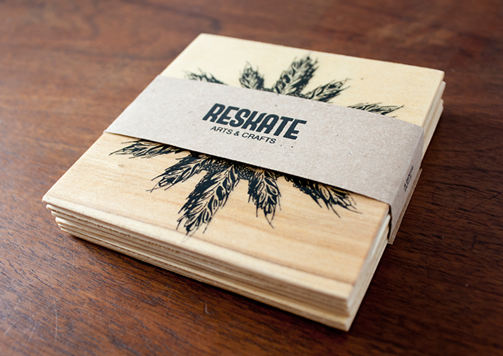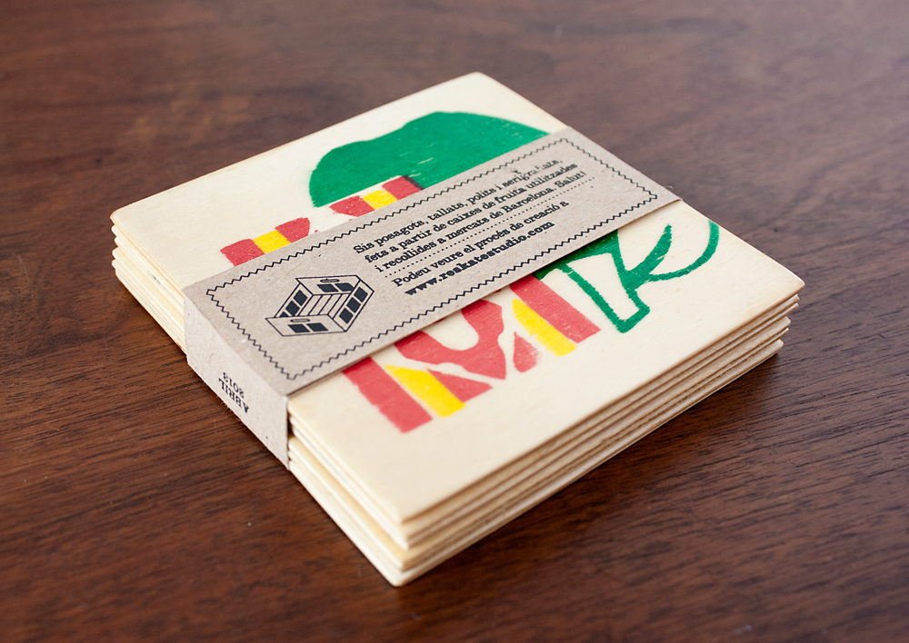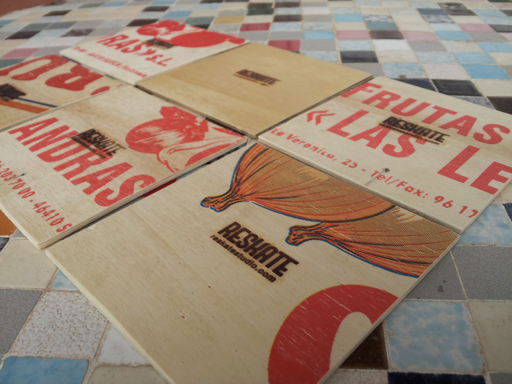 Puede que en lo más remoto de una tarjeta de visita de Reskate Arts & Crafts haya un cierto olor a manzana. O podría oler a pera. Depende de la fruta que llevara la caja de madera que se convirtió después en un pack de seis posavasos que sustituyen a las clásicas tarjetas de empresa.