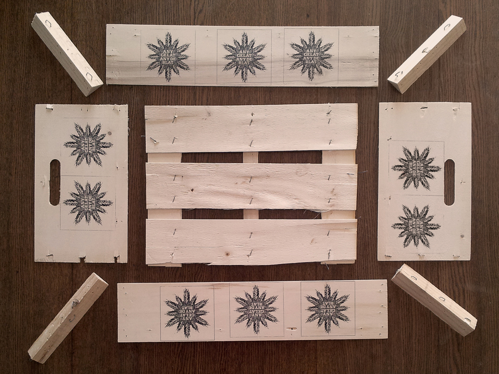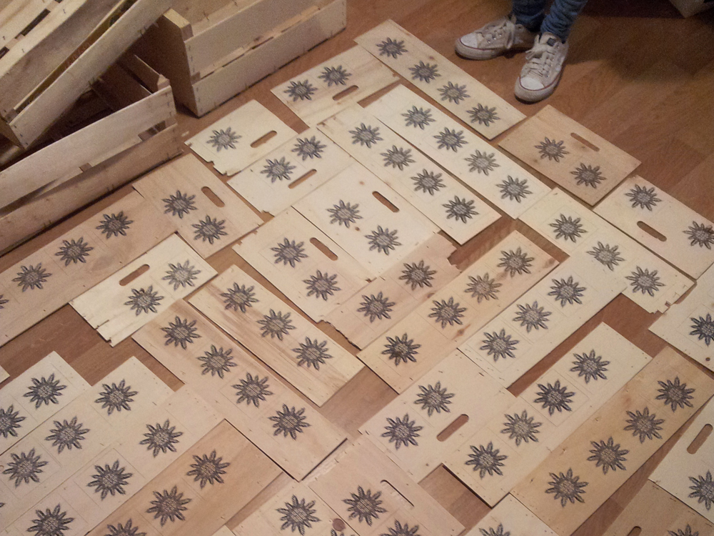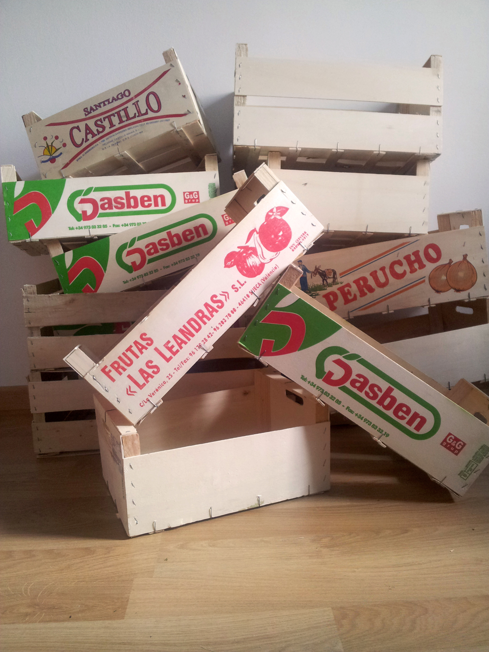 La siguiente pregunta fue: “¿dónde encontramos la madera?”. La contestación estaba en los mercados locales de Barcelona. Las fruterías dejan cada día montones de cajas de madera, apiladas, donde viajan las frutas y verduras. “Es una madera de muy buena calidad que se tira después de transportar los alimentos. En la misma caja viene impresa la frase: Para un solo uso. Así pretenden evitar que haya problemas de higiene, pero puede aprovecharse para otras cosas”.
