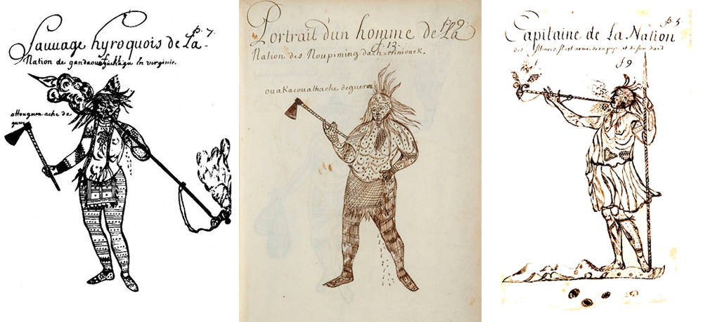 Fue el misionero francés Louis Nicolas el primero en entrar en detalle sobre estas tribus. Al llegar a las colonias, a finales del siglo XVII, quedó fascinado por la exhuberancia y exotismo de la región, y lo compiló todo en el Codex Canadensis. Compuesto por 180 dibujos, retrata plantas, mamíferos, pájaros, peces… y, por supuesto, los aborígenes, se detuvo en retratar exactamente las pinturas y tatuajes con las que decoraban su cuerpo. Tras su muerte en 1680, hubo que esperar casi un siglo para que otro artista, el diplomático Jacques Grasset, tomara el relevo de acercarse tanto a las tribus de la Gran Conferencia Iroquesa.