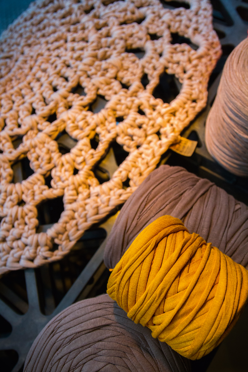 En el taller se trabajan desde bufandas y cestas hasta alfombras, que luego se ponen a la venta. Pero una parte del proceso consiste también en enseñar a quien lo desee cómo elaborar en casa esos tejidos. «Se genera una energía muy positiva cuando esa gente ve que puede enseñar cosas a muchachos, y viceversa, cuando los jóvenes ven que aún tienen cosas que aprender de una persona mayor. Se genera un respeto y desaparece el típico ¡qué aburrido, cosas de vieja! Esa es una de las ideas que la Factory quiere transmitir: sabemos cómo hacer esto y queremos que ese conocimiento se transmita a los jóvenes».