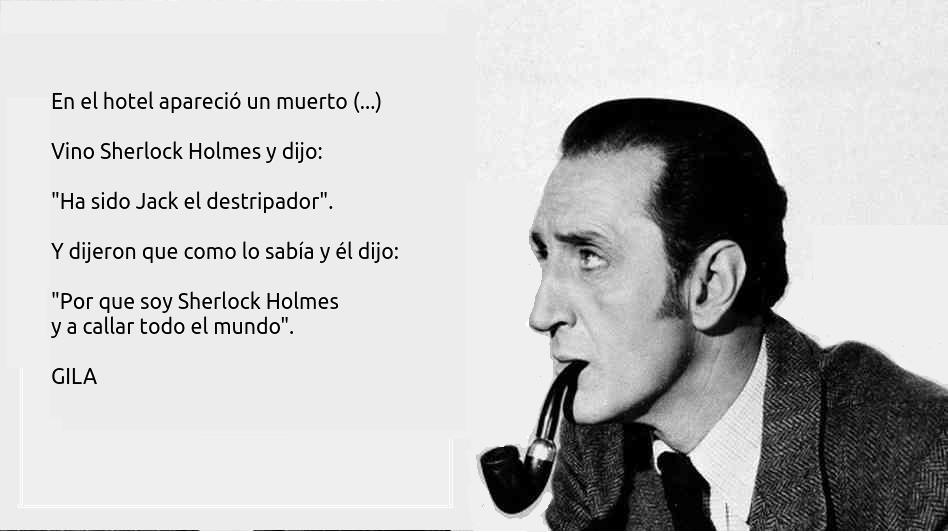 Acabamos de ver que Sherlock Holmes reúne los distintos elementos de marca que lo hacen invulnerable. Pero quizá, el mejor resumen que podemos hacer es recordar un chiste de Gila (el mejor monologuista y cuentacuentos de todos los tiempos):