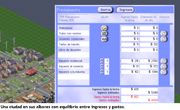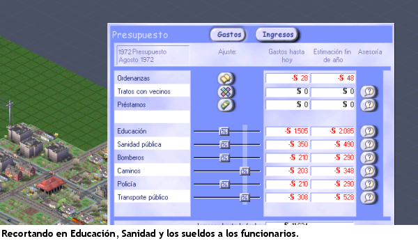 Los jugadores experimentados saben que bajar los impuestos hasta los tramos iniciales es la única solución para recuperar la economía de la ciudad, así como mantener los servicios públicos en niveles aceptables y una política prudente de inversiones.