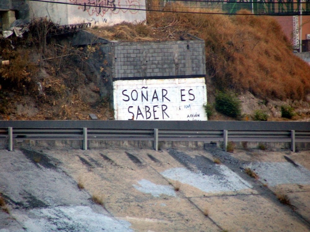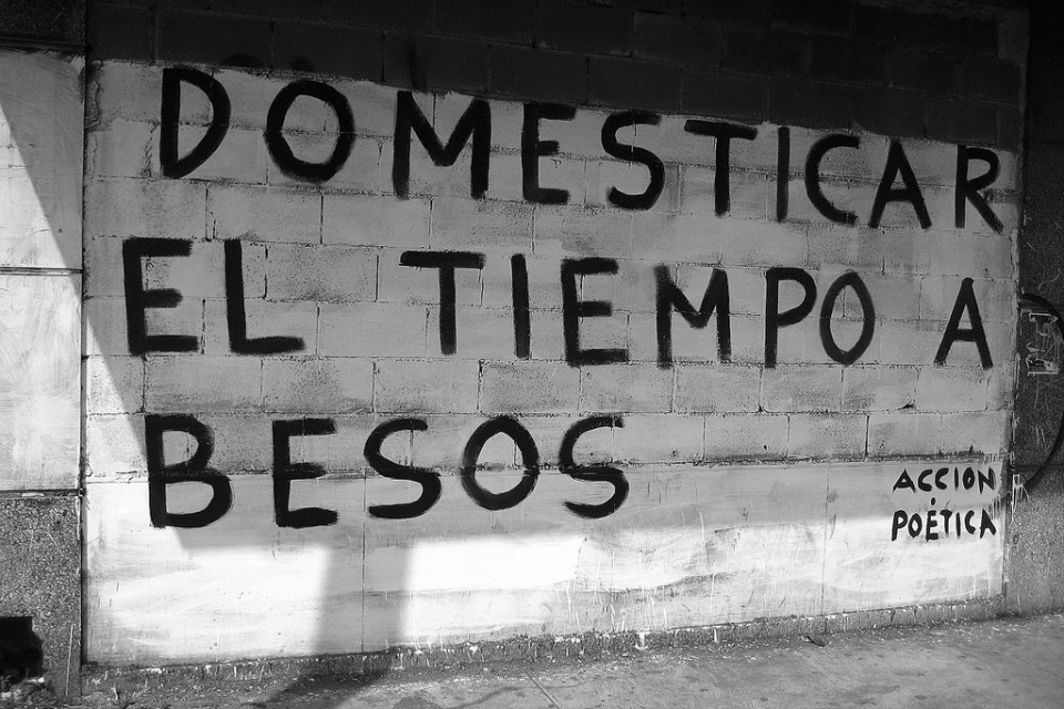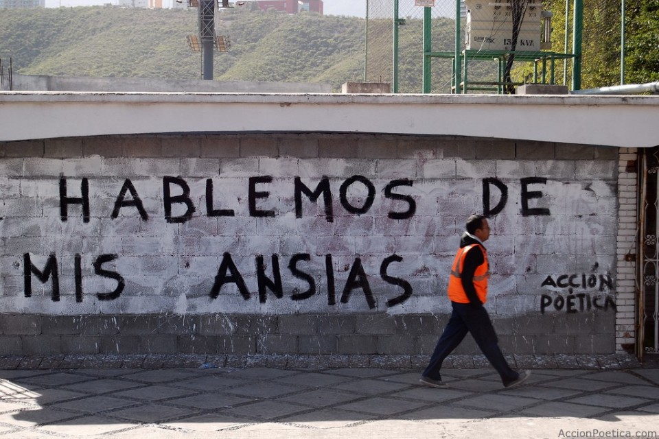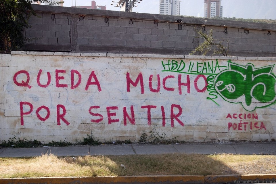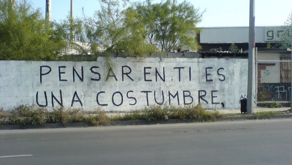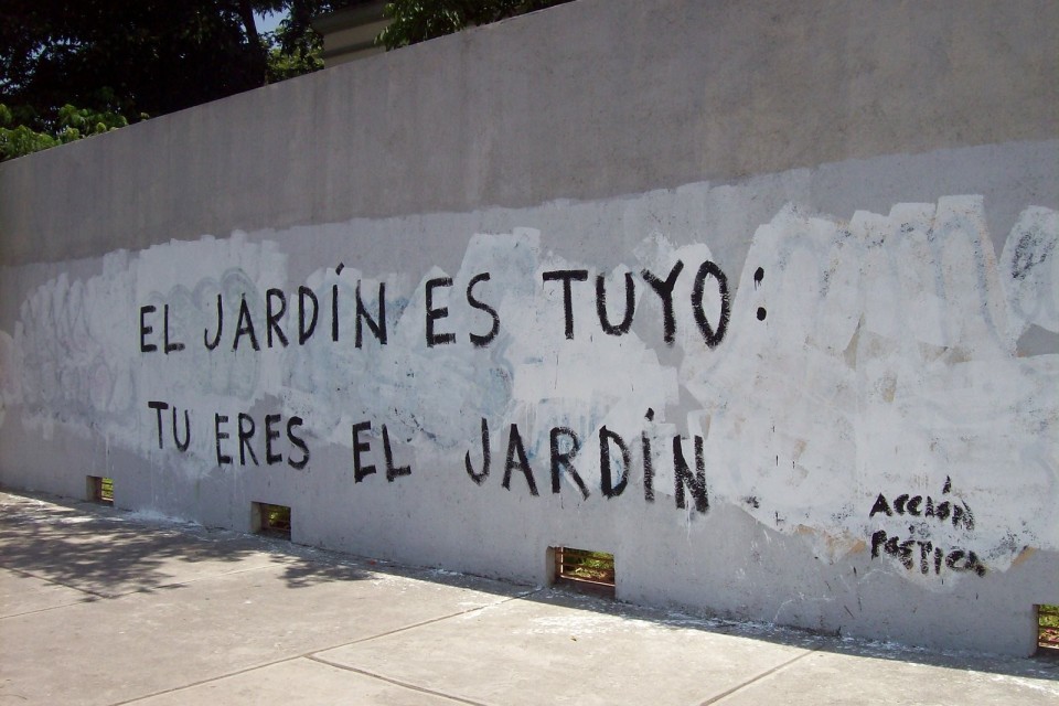 La pared es gris. Los ladrillos viejos se desmoronan poco a poco. Algunas hierbas han intentado crecer a su lado sin éxito. A su lado pasan decenas de autobuses, coches y transeúntes camino a su trabajo. Hace unos meses nadie se fijaba en este pedazo de cemento, hasta que un día, amaneció sobre él un mensaje particular: “Cada palabra es un sitio para mirarte”. La gente sonreía para sí misma al leer una frase así en la calle en vez de las míticas firmas de graffitti que insultan al gobierno o que algunos pandilleros utilizan para comunicarse entre sí.