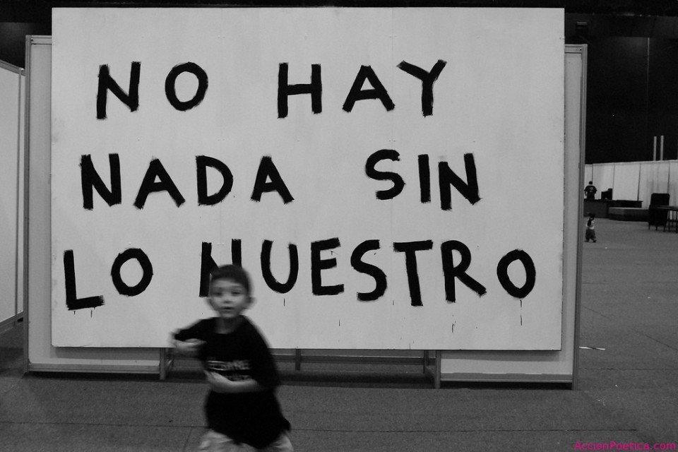 Arte urbano, darle distintas plataformas a la poesía, contagiar a la ciudad de emociones e ideas. El mensaje, escrito con letras negras sobre un fondo blanco en los muros y paredes de muchas ciudades, se repite constantemente: “Sin poesía no hay ciudad”.