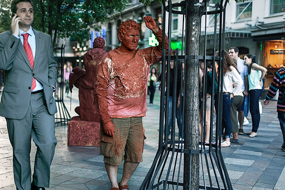 Las capturas se hacen desde la discreción. El fotógrafo insiste en su intención de no alterar el paisaje. La presencia de una cámara erige las posturas y edulcora las muecas agrias. “Para que las fotos tengan esa sensación de realidad siempre intento pasar desapercibido. No quiero influir en los gestos ni en las actividades de las personas. Nunca pido permiso a nadie para hacerle una foto porque eso restaría mucha espontaneidad”.