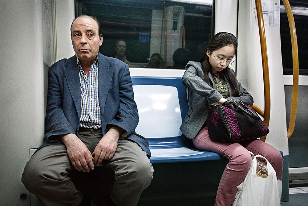 Las capturas se hacen desde la discreción. El fotógrafo insiste en su intención de no alterar el paisaje. La presencia de una cámara erige las posturas y edulcora las muecas agrias. “Para que las fotos tengan esa sensación de realidad siempre intento pasar desapercibido. No quiero influir en los gestos ni en las actividades de las personas. Nunca pido permiso a nadie para hacerle una foto porque eso restaría mucha espontaneidad”.
