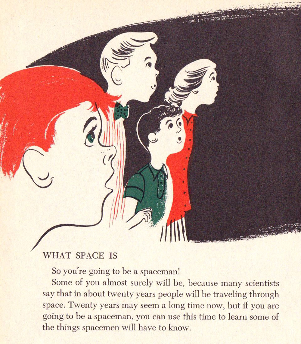 El universo volvió a la Tierra tres años más tarde. En 1956 apareció otro libro sobre viajes espaciales. Se llamaba The Complete Book of Space Travel y, según Paleo-Future, la llegada a la Luna o a otros planetas ya era incuestionable. La pregunta que se hacían entonces era: ¿cuándo?