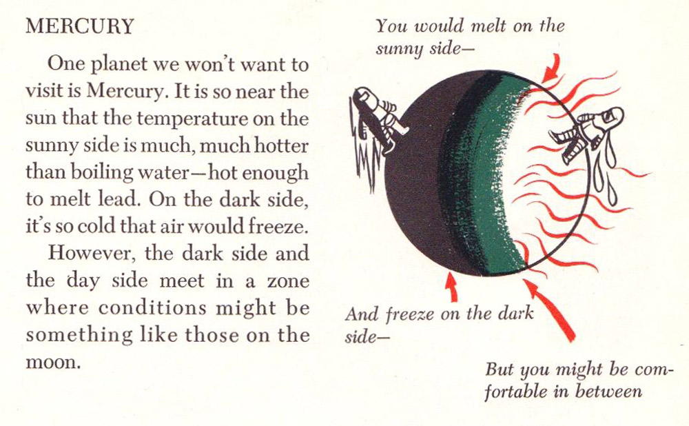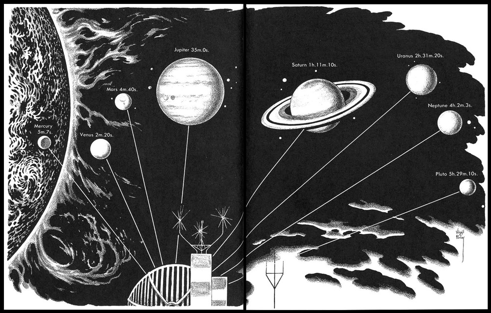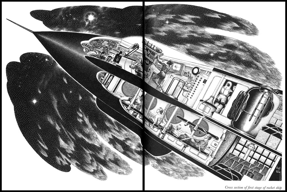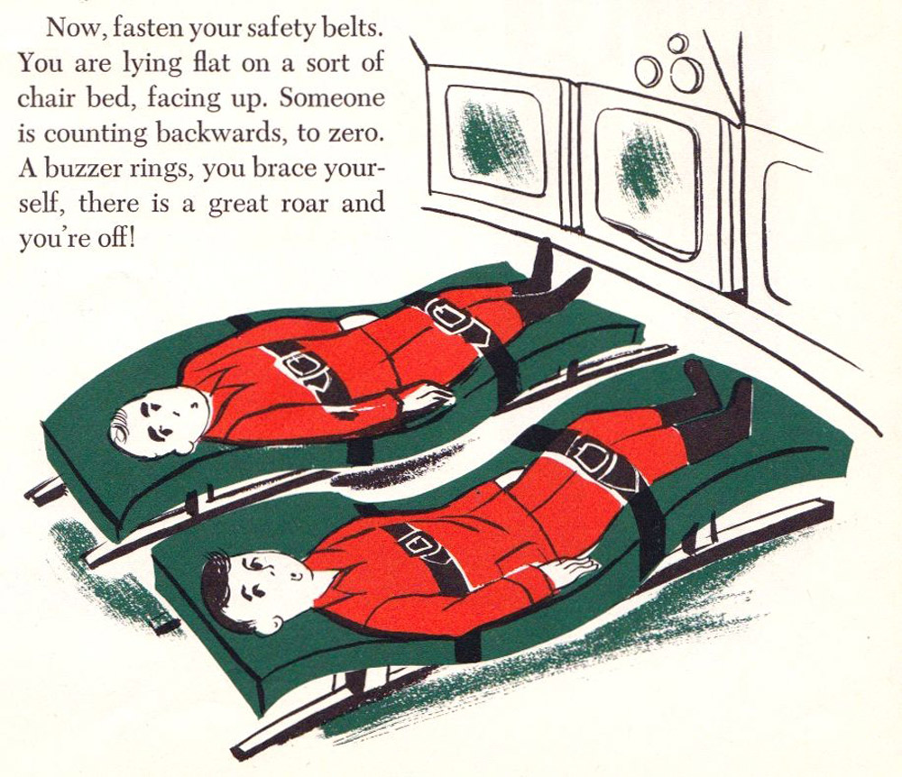 En 1953 apareció un viaje espacial en textos e ilustraciones de la neoyorquina Jeanne Bendick. El libro se llamaba The First Book of Space Travel y, en unas 60 páginas, explicaba, con rigor científico, el sistema solar y el funcionamiento de un cohete.
