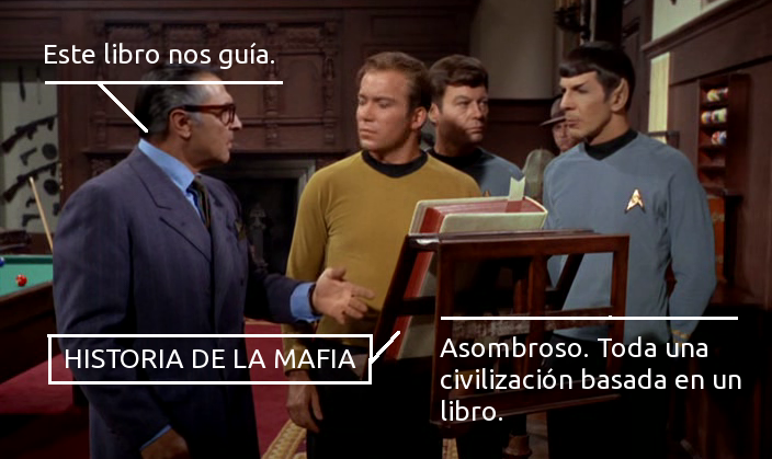 Un planeta se rige por el libro Historia de la mafia, abandonado tiempo atrás por unos visitantes de la Flota Estelar.